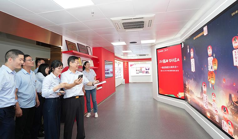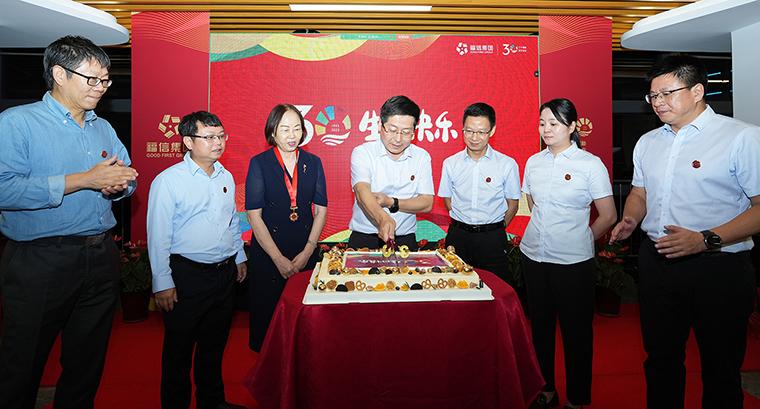 30 Fu Li, dedicated to the faith industry. On October 13, Fuxin Group's 30th anniversary celebration and 2023 Mid Autumn Festival cake festival were successfully held on the fourth floor of the Xiamen Softlife Office, and the Shanghai branch venue was also connected. All employees of Fuxin Group's Board Office, Chen Zhanghui Fuxin Charity Foundation, Fuxin Financial Holding, Cultural Exchange, Real Estate Group Headquarters, Tangrenjia Service Headquarters, and principals of Real Estate Straits Corporation and Fuxin Optoelectronics Corporation attended the event. The event also invited the employees of the Group who have been in Xiamen for 20 years or more and some retired senior leaders to participate together. More than 200 Fuxin families gathered together to share the Group's 30th anniversary celebration and Mid Autumn Festival reunion.